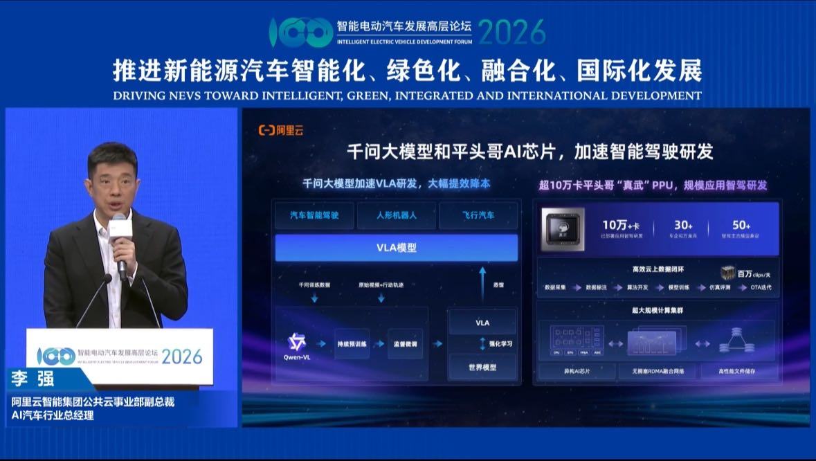 The figure marks what the company described as a record for self-developed AI chips used on a public cloud platform in China’s automotive sector, according to Li Qiang, vice president of Alibaba Cloud Intelligence’s public cloud division and head of its automotive AI business, speaking at the Intelligence Electric Vehicle Forum 2026.