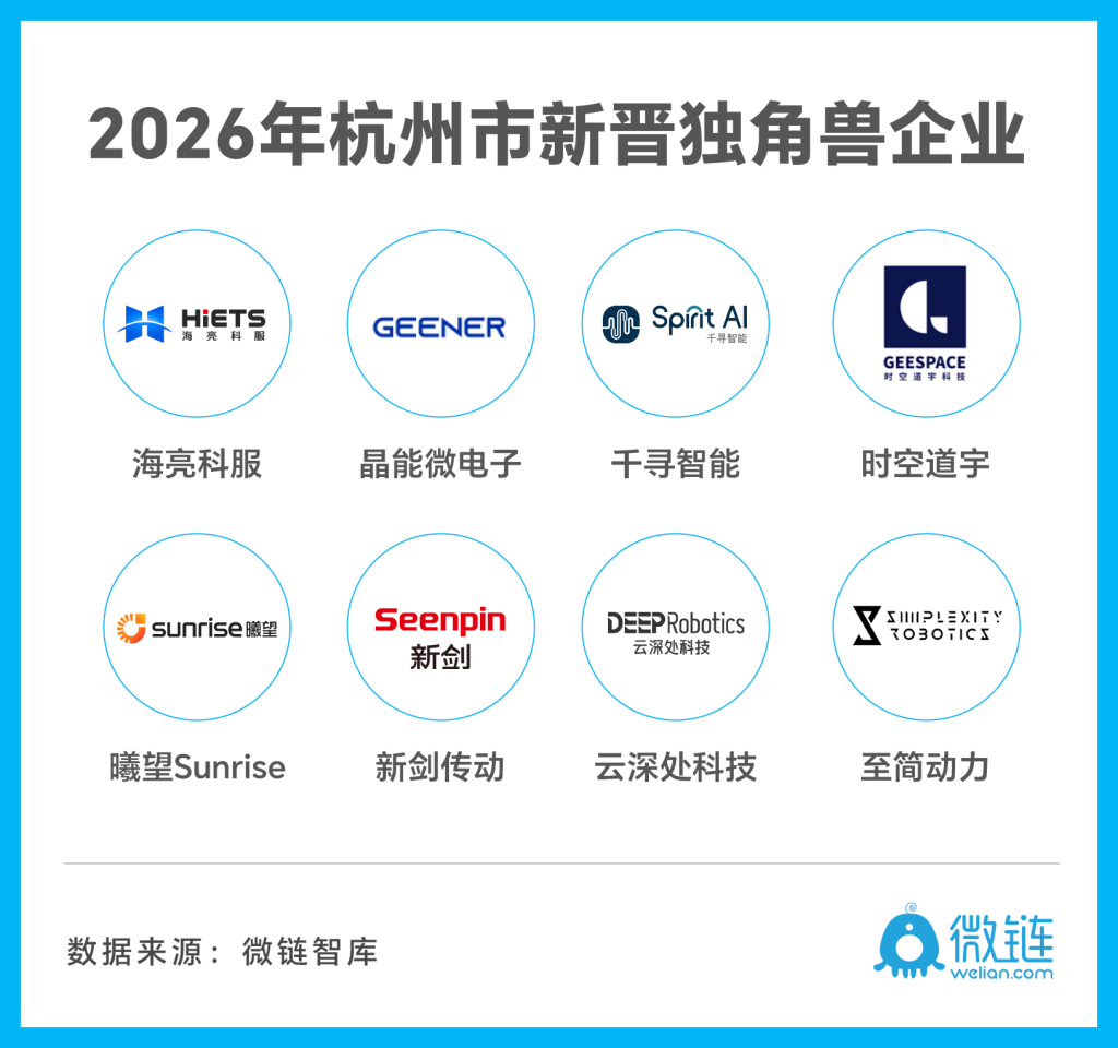 The newly minted eight Hangzhou-based unicorns in 2026. Image credit: Welian