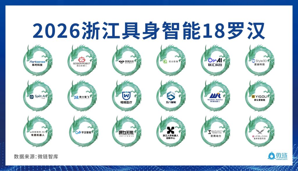 City breakdown of Zhejiang’s 108 embodied AI “Hidden Dragons.” Image credit: Welian